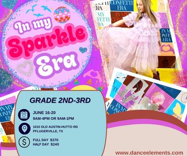 Each camp week we cover multiple styles of dance including ballet, tap, jazz, acro, contemporary, and hip hop. There is a full day camp option where dancers stay until 4:00pm. The focus shifts from dance to activities that keep the kids engaged and moving in the afternoon. We typically have two swim days and two park days; we walk across the street for these activities. We also do some dancing in the afternoon and crafts. On Friday afternoon we usually finish up with a movie and pizza party in the afternoon; that takes place in the studio.
