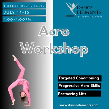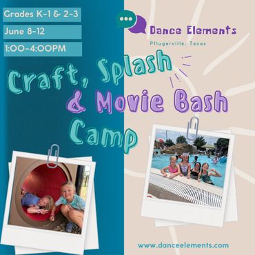 Each camp week we cover multiple styles of dance including ballet, tap, jazz, acro, contemporary, and hip hop. Option to add "Craft, Splash, & Movie Bash" camp from 1:00-4:00pm to make this a full day camp.